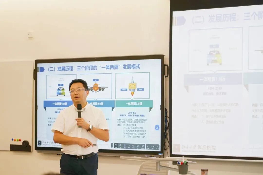 北大深圳医院科研教学部石宇主任对北大深圳医院的基本规模、学科建设成效、科研项目等情况进行详细介绍,并期待三方在合作备忘录签署后进行良好互动与交流。