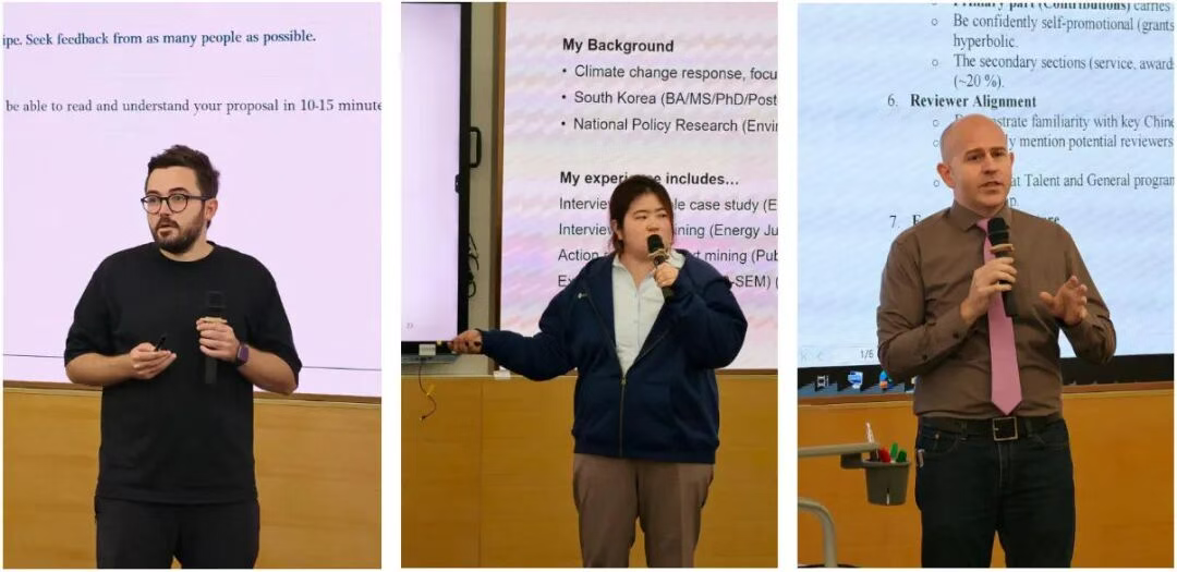 与此同时,为让申报指导更具实操性,会议特别邀请我校三位具有成功申报经验的外籍教师分享实战心得。机器人与自主系统学域助理教授Oncay Yasa、碳中和与气候变化学域助理教授Seona Park以及智能制造学域访问副教授Shane Miguel Johnson,结合自身申报经历,分别从选题方向、材料撰写、细节把控、风险规避等维度进行深度分享,拆解申报过程中的关键节点与实用技巧,为参会外籍教师提供了可借鉴、可落地的实践参考。