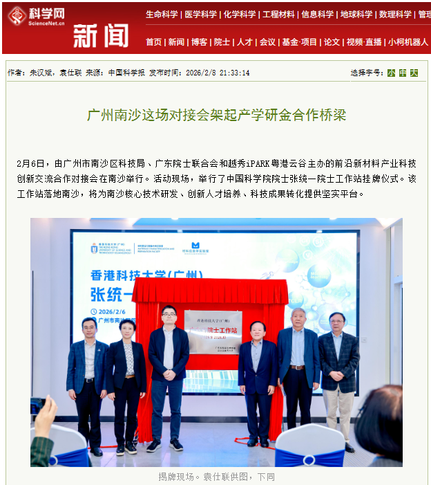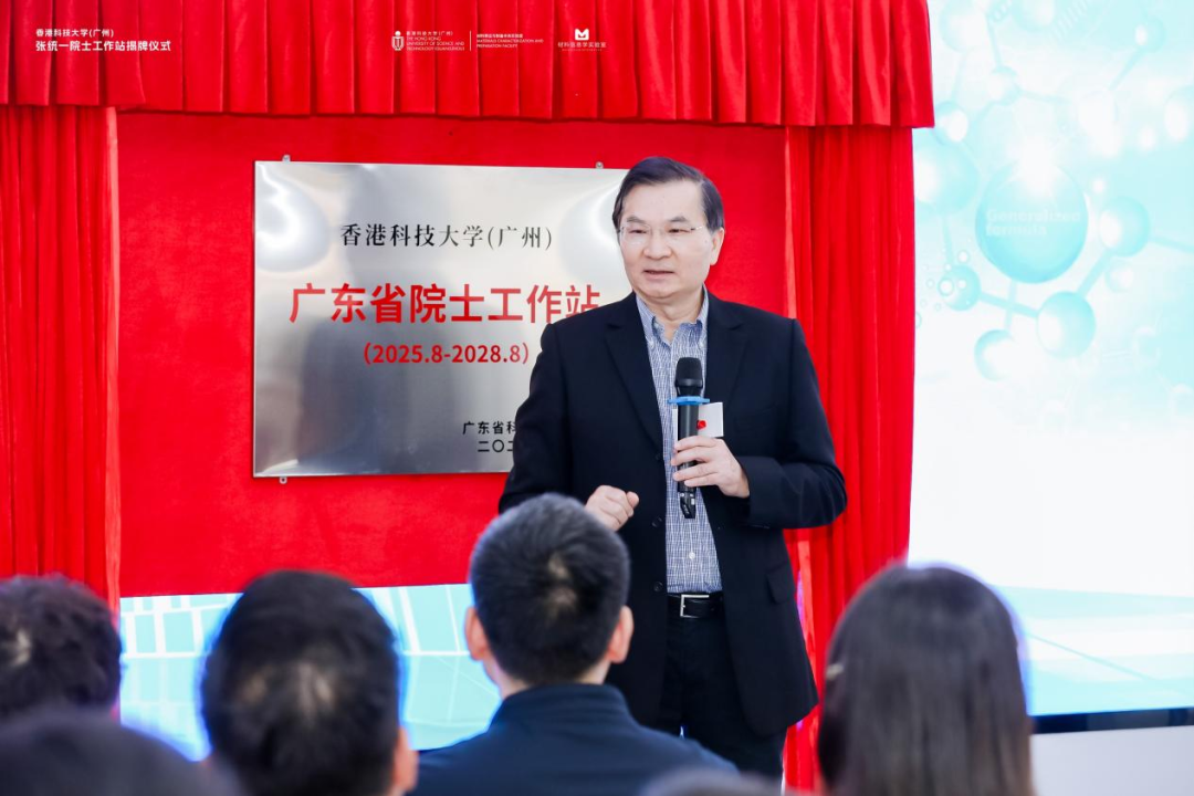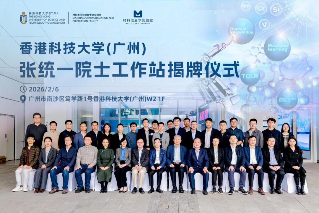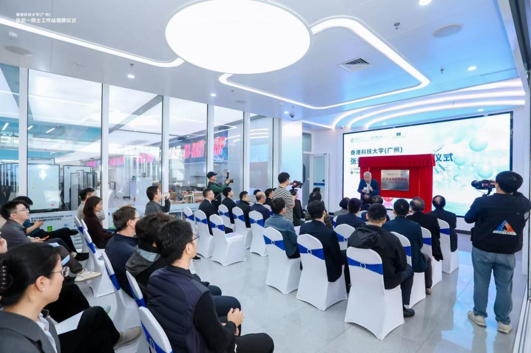2月6日下午,香港科技大学(广州)举行了张统一院士工作站揭牌仪式。在四十余位嘉宾的见证下,张统一院士与几位特邀嘉宾一同为“广东省院士工作站”揭牌。