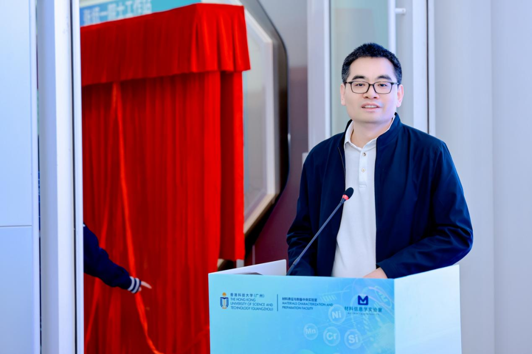 最后,港科大(广州)实验设施与安全管理办公室主任、材料表征与制备中央实验室主任翁禄涛教授代表院士工作站发言,他首先感谢各级部门和学校领导对工作站的支持和帮助,并向来宾介绍了工作站和材料信息学重点实验室的基本情况和工作重点,他说:“在张统一院士带领下,重点实验室现有成员46人,分别来自功能枢纽、信息枢纽、系统枢纽的十个学域,形成了一支‘院士引领-国家级人才领衔-青年骨干支撑’的交叉型科研梯队。研究重点聚焦‘AI+材料’,它不仅契合学校融合学科发展的特色,更是我们服务国家与大湾区战略科技建设的具体行动。”